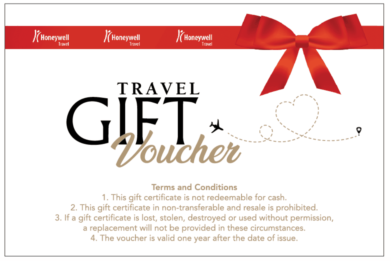 What can I do with my gift voucher ? Contact us by phone, email, or visit our office directly and present your gift voucher (physical or e-gift format) to choose from all of Honeywell Travel’s services: